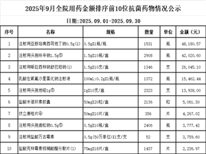 阳春市中医院阳光用药监控数据 (2025年9月)