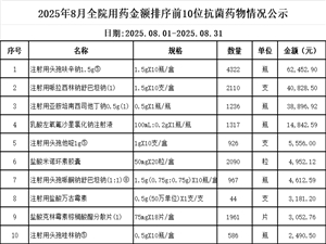 阳春市中医院阳光用药监控数据 (2025年8月)