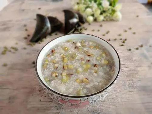 绿豆味甘性寒,能清热解暑,利尿消肿,还能滋润肌肤,是常用的消夏、止渴的食材;赤小豆又称红小豆,能够解毒利水,清热除湿,还可健脾止泻。将两种豆(各30克)混在一起,与少量大米一起煮成稀粥,甘甜可口,可清热除湿,常食还有助于解除疲劳。