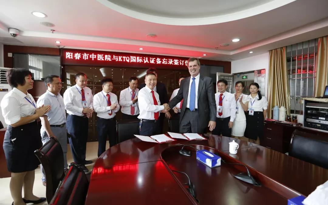 会上,院党总支书记、院长陈永雄向德国KTQ国际认证人员介绍了我院的发展情况以及中医药文化。Dr.Breinlinger-O’lly教授在会上指出,启动KTQ质量认证工作意义重大,它是将PDCA循环理论融入到医院的每一项实际工作中,并持续改善和提高医院的服务质量,实现国际化、规范化、标准化、精细化医院管理,保障患者安全,为患者提供优质、便捷、高效、温馨和一流的医疗技术与服务。接着,双方在会上签订了备忘录协议,加强了合作意向。