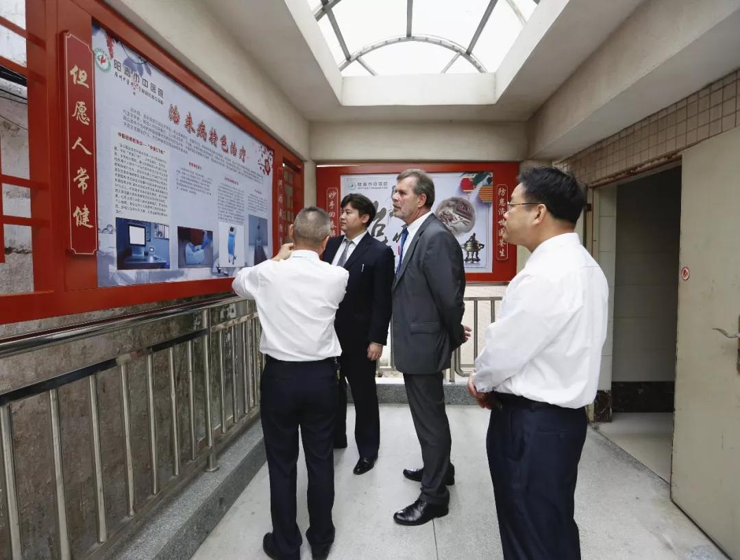 签订仪式后,Dr.Breinlinger-O’lly教授、德中卫生组织秘书长计鹏一行在院党总支书记、院长陈永雄等领导班子的陪同下参观了我院的内科住院大楼、中医药文化长廊等区域。Dr.Breinlinger-O’lly教授表示,他对中国传统中医药文化非常感兴趣,对我院通过KTQ认证非常有信心。