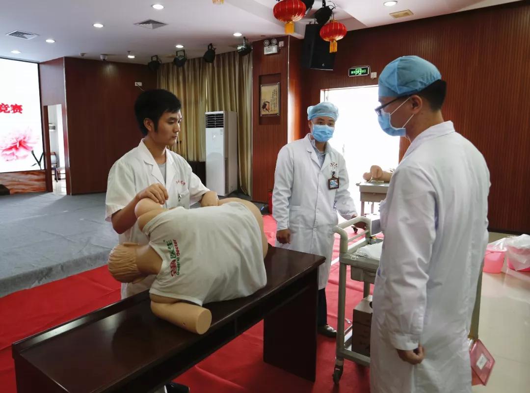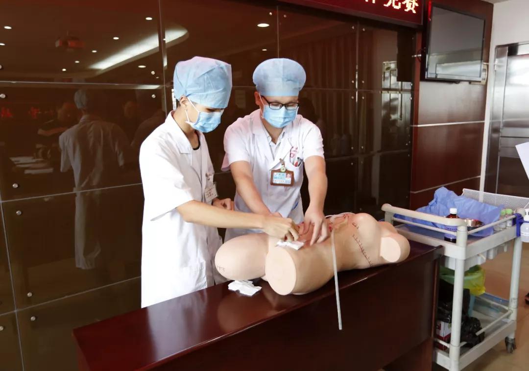 此次比赛分为内科组比赛及外科组比赛,共有内科组8支队伍、外科组8支队伍总计32位选手参加本次竞赛。竞赛形式多样,内科组的比赛操作是腹穿和腰穿,选手必须要在规定时间进行消毒、铺巾、局部麻醉及准确找到穿刺点穿刺等操作;外科组的比赛操作是换药和拆线,选手要在规定时间以内完成外科临床基本技能操作项目全套考核流程:刷手、穿无菌手术衣、戴无菌手套、消毒、铺无菌巾、切开、打结、缝合、拆线、换药。比赛竞争异常激烈,评委本着公平公正的原则,打分毫不留情,但是在参赛的选手心里,格外珍惜机会,因为成长比起成绩则更为重要。评委各自在赛后为选手都进行了点评与讨论。最后,由内二科获得了内科组的第一名,内三科获得第二名,内五科、内四科分别获得第三名及第四名;外科组由骨二科获得第一名,外二科获得第二名,创伤二科、骨三科分别获得第三名及第四名。