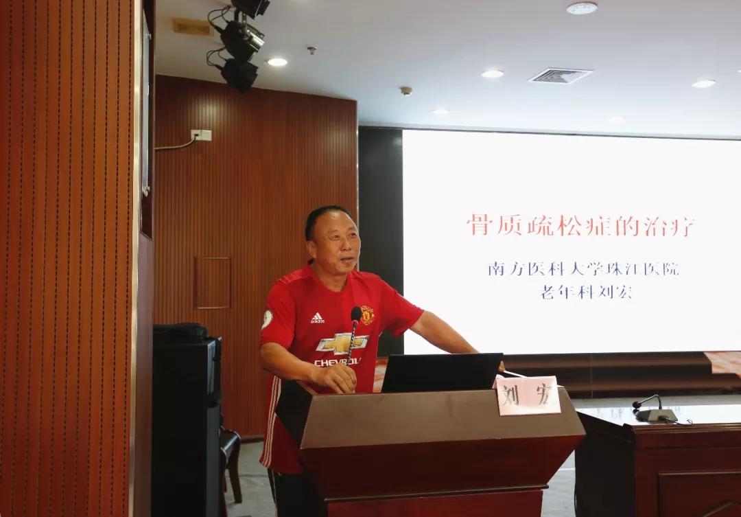 第二节为骨质疏松及骨折诊疗规范学习班。来自广州军区总医院的邓伟民教授、广州医科大学附属第三医院的赵洪普教授、南方医科大学珠江医院的刘宏教授分别就《骨质疏松临床表现、诊断及鉴别诊断》、《骨代谢指标在骨质疏松治疗中的意义》、《原发性骨质疏松症的预防和治疗》等三个课题为我市300多名医务人员带来了3场高水平的学术讲座。会场座内无虚席,学术气氛浓烈,授课内容精彩,赢得了学员们的阵阵掌声。