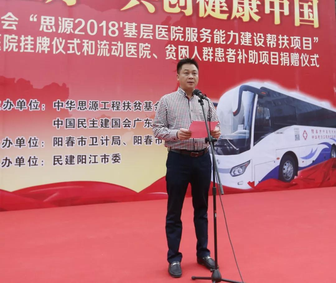 2018年初,阳春市中医院成为了中华思源工程扶贫基金会定点扶贫医院。一年以来,为促进医院服务能力建设、加快满足阳春市贫困人群和弱势群体的医疗需求,医院利用中华思源工程扶贫基金会的扶助资金协助多个贫困患者家庭申请了贫困患者补助款,还利用基金会赠予的大巴成立流动医院,驶向乡镇、敬老院等地,上门为群众提供优质的医疗服务。