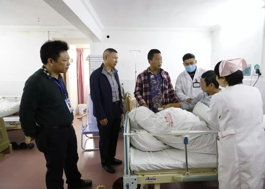 (图为:陈永雄院长、朱家志副院长探望贫困患者)