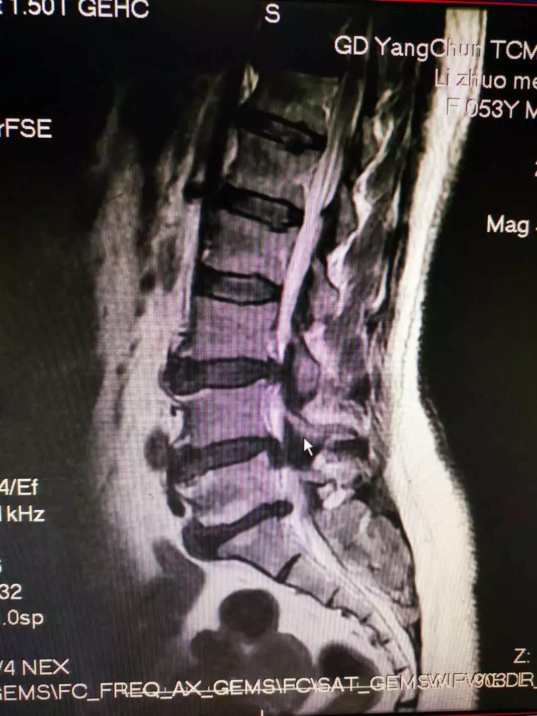 患者梁某某今年53岁,右下肢麻痹疼痛,平卧无法缓解,下地站立疼痛更加明显。患者因"反复腰痛6年,加重伴右下肢放射痛10余天"入院,止痛药缓解不明显。患者腰4/5椎间盘脱出,疼痛明显,影响日常的生活,痛苦不堪,强烈要求手术治疗,家属着急。