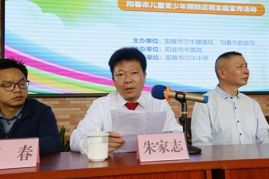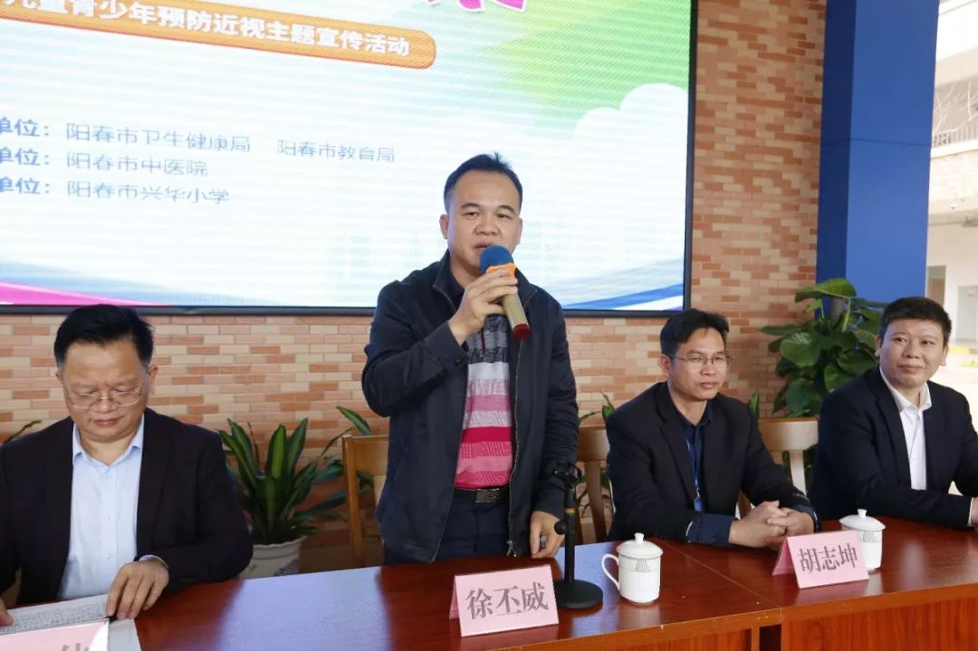 启动仪式上,兴华小学校长胡志坤首先发表讲话,他对此次的儿童青少年预防近视主题系列活动表示支持。随后,我院党总支书记、院长陈永雄作了讲话,他指出,儿童青少年是预防近视的重要时期,预防近视等于点亮未来。并针对强化儿童青少年保护视力意识作出了具体的建议。市卫健局副局长黄佳在会上表示,家长们以身作则,医生主动开展健康教育,社会各界通力合作,才能共同做好近视防控工作。随着市教育局副局长徐丕威的一声宣布,全市儿童青少年预防近视宣传活动正式启动!