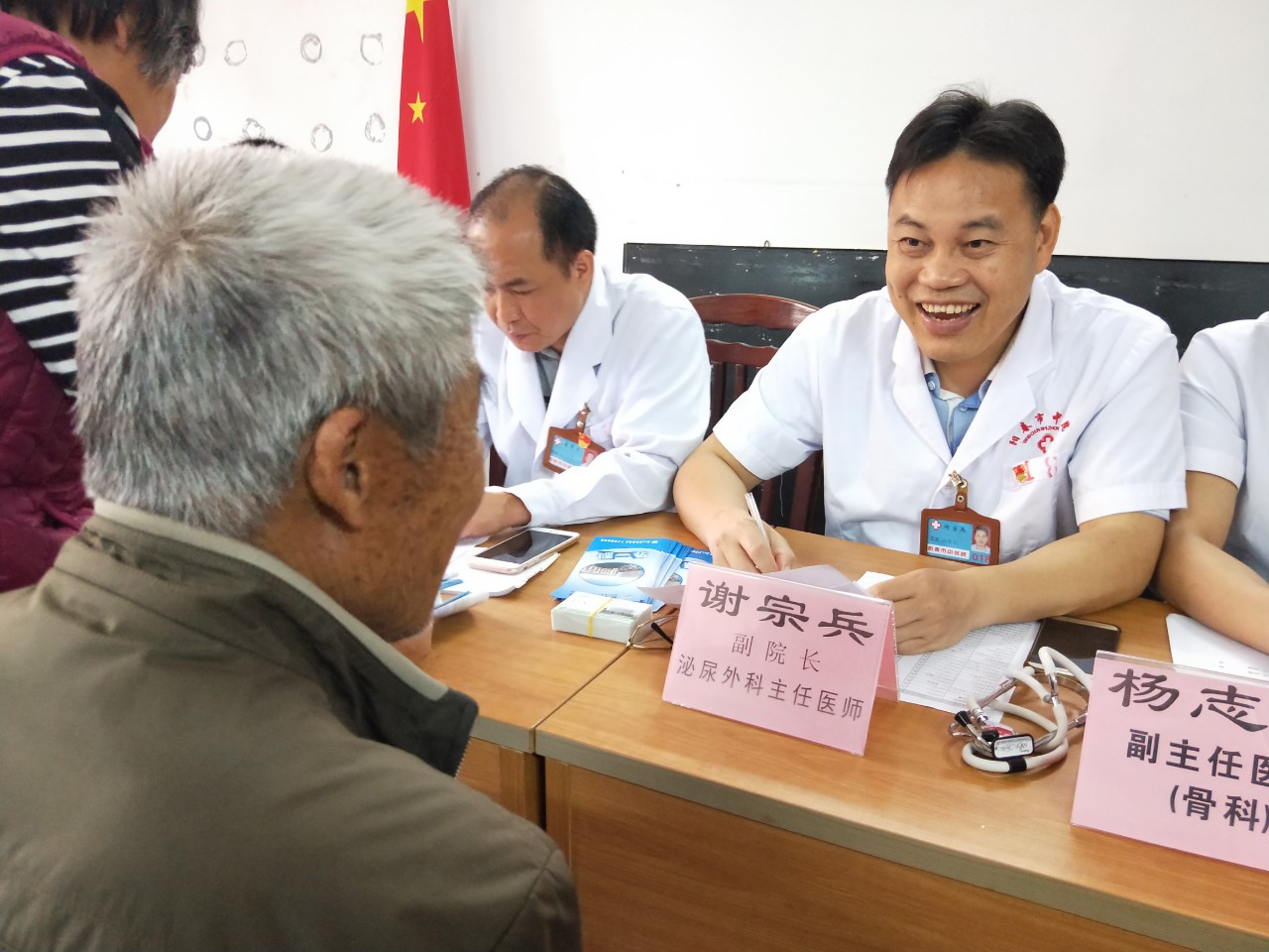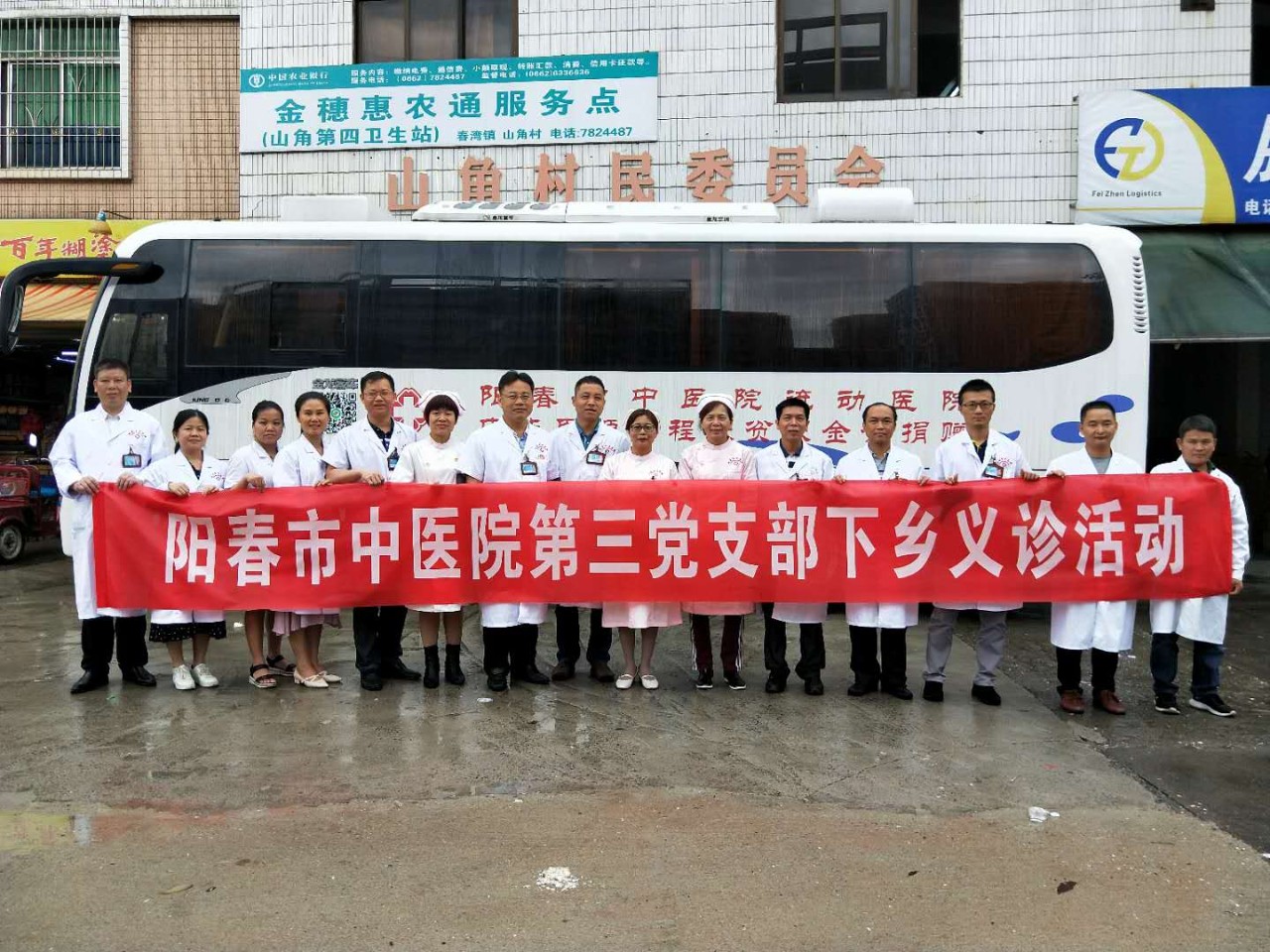 4月16日上午,为更好地服务边远地区群众,使农村地区群众足不出户也能享受到优质的医疗服务,我院第三党支部在副院长、第三党支部书记谢宗兵的带领下,精心组织了一支由内科、外科、骨伤科等20多人组成的党员干部义诊服务队前往春湾镇山角村开展送医送药下乡义诊活动。