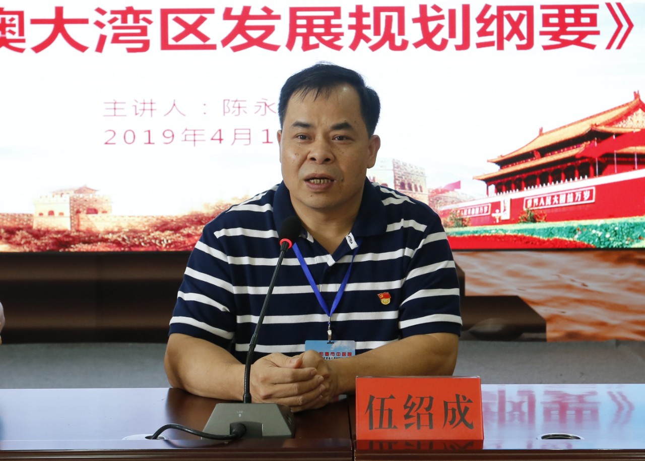 4月19日,为了解粤港澳大湾区建设,深入学习、贯彻《粤港澳大湾区发展规划纲要》(以下简称《规划纲要》)文件精神,我院在内科住院大楼多功能会议室开展了学习贯彻《粤港澳大湾区发展规划纲要》宣讲活动,活动由伍绍成副院长主持,由院党总支书记、院长陈永雄主讲。医院全体党员、中层以上干部200多人参加了活动。