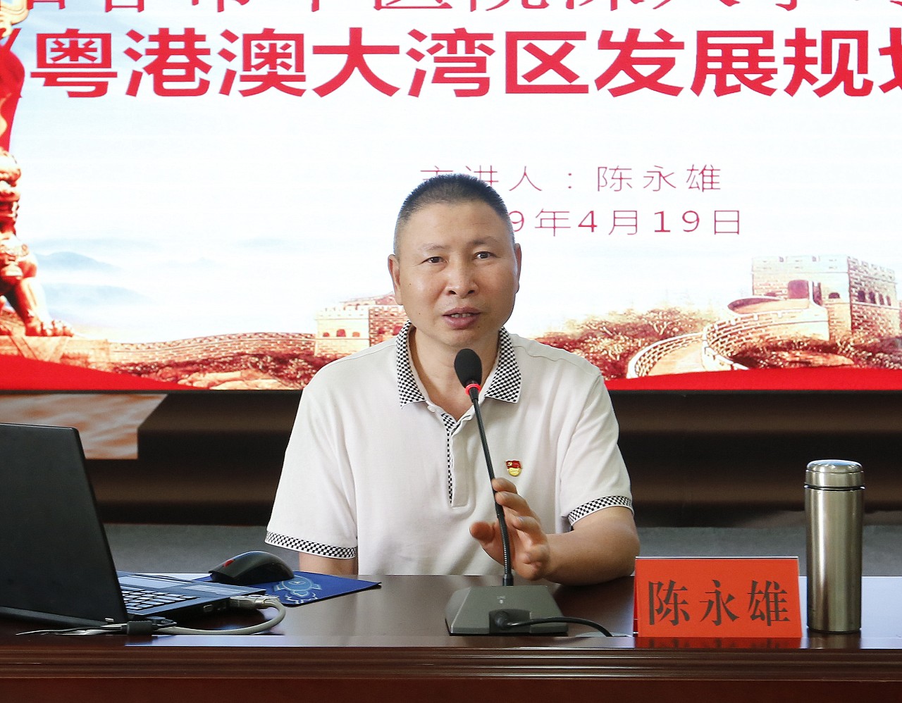 宣讲活动上,陈永雄围绕《粤港澳大湾区发展规划纲要》主要内容,广东推进粵港澳大湾区建设情况,阳春市积极主动融入粤港澳大湾区、实现绿色崛起等内容,运用翔实的资料、鲜活的例子,深刻阐述了习近平总书记关于粤港澳大湾区建设的重要论述的丰富内涵和精神实质,对《粤港澳大湾区规划纲要》的重大意义、战略定位、发展目标、重点任务作了全面深入的宣讲解读。