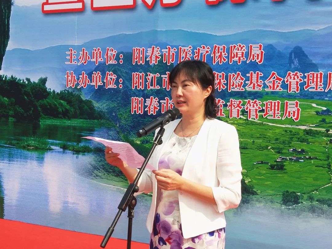 活动仪式上,阳春市政府副市长何梅出席活动并讲话。市府办副主任黄昌容,医保局全体人员,社保分局、卫健局、财政局、公安局、市场监管局、税务局分管领导,全市定点医疗机构主要领导、分管领导及机构医保经办人等共200余人参加了本次活动。
