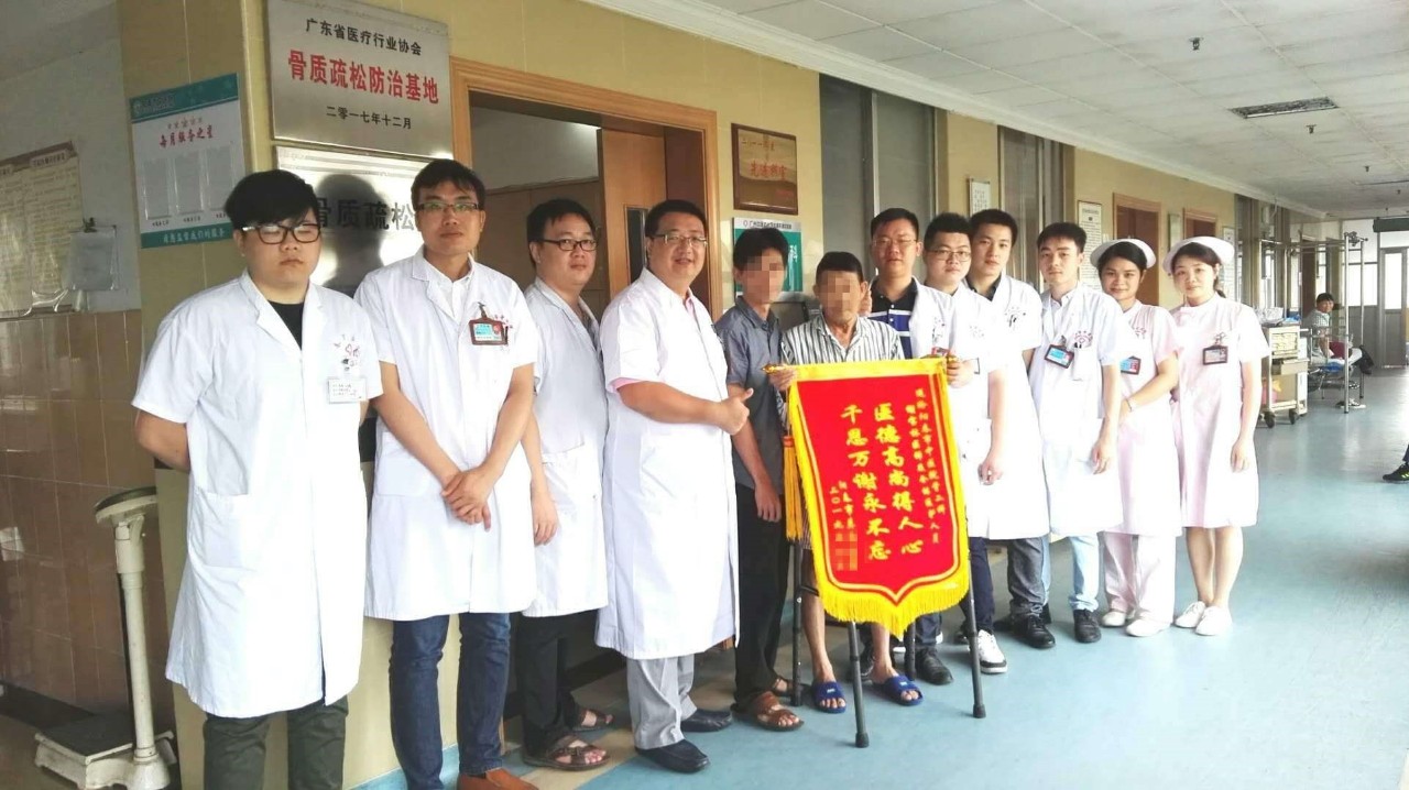 据了解,莫先生今年63岁,这次是他第二次入住阳春市中医院骨二科,原来3个月前莫先生双髋关节疼痛难忍,行走困难,今年2月份来阳春市中医院骨二科就诊,检查出双侧股骨头缺血性坏死,股骨头已经塌陷变形,我院骨二科主任谢宝林为他仔细分析病情,向他说明预后及关节置换的必要性,并为他制定了详细的治疗方案。莫先生及其家属对我院骨二科关节技术水平表示信任,同意并接受治疗方案,当时为其行右侧全髋关节置换术,术后患者右侧髋关节疼痛明显缓解,在医护人员的悉心照顾及康复指导下,第二天就可以下地行走锻炼,术后恢复非常满意;经过一个多月的时间,莫先生身体恢复良好,为了解决另一侧髋关节疼痛,再次入住骨二科行左侧全髋关节置换术治疗,现莫先生术后恢复良好,双侧髋关节无明显疼痛,行走正常,对此莫先生大赞骨二科的技术及服务一流,特意送上锦旗以感谢。