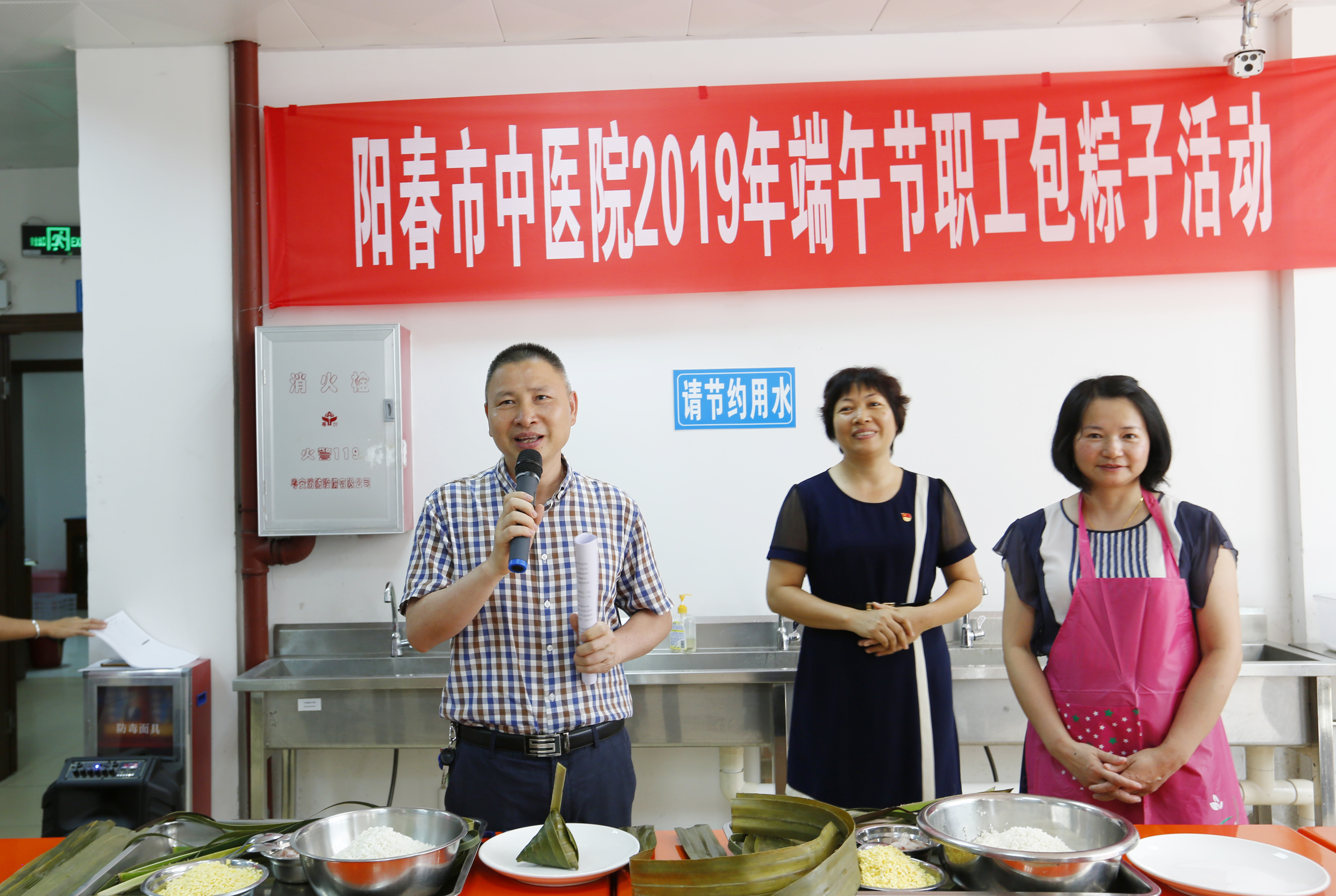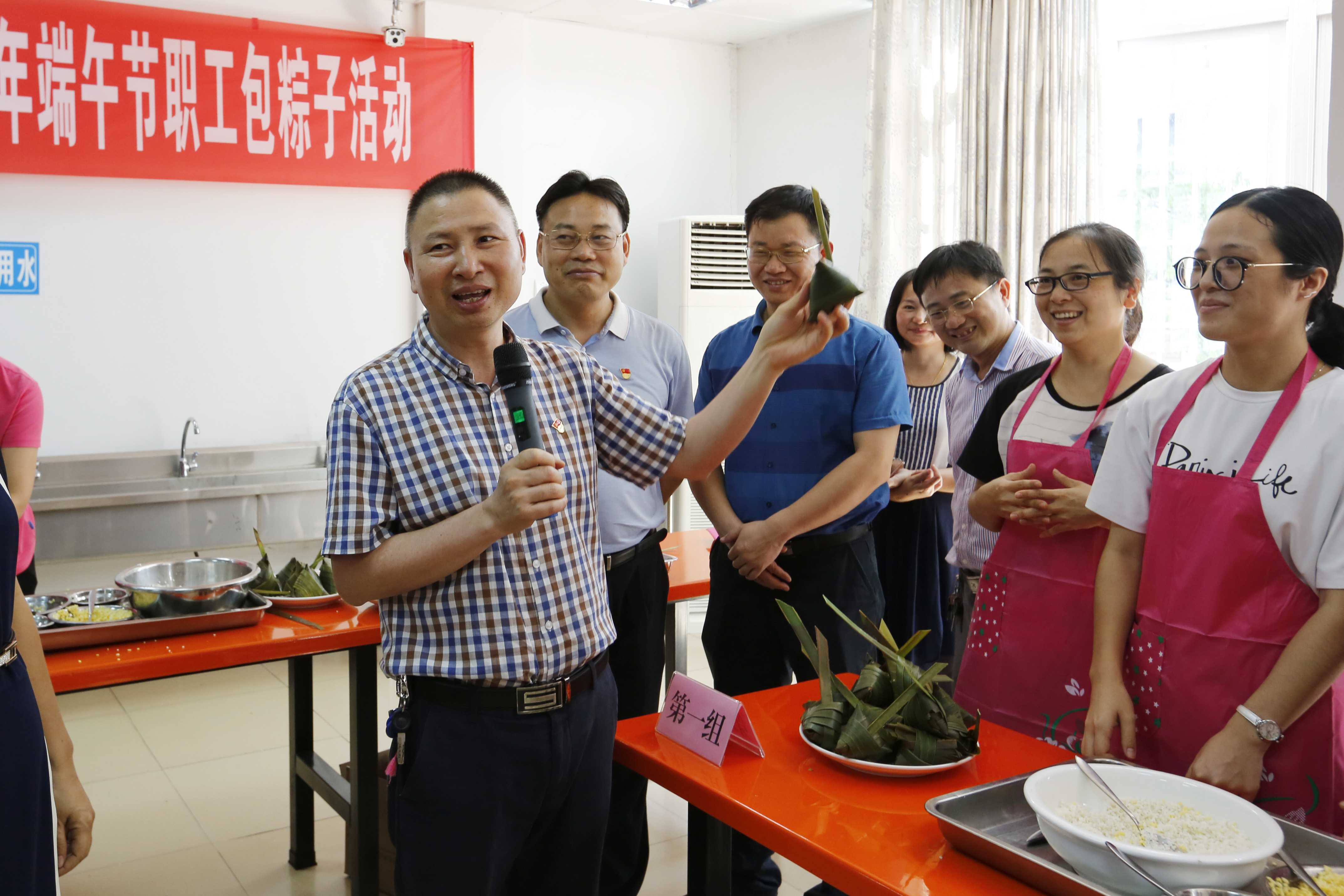 粽子包完后,院长陈永雄分别对各个队伍的粽子进行了点评,幽默的点评令得全场职工笑逐颜开。