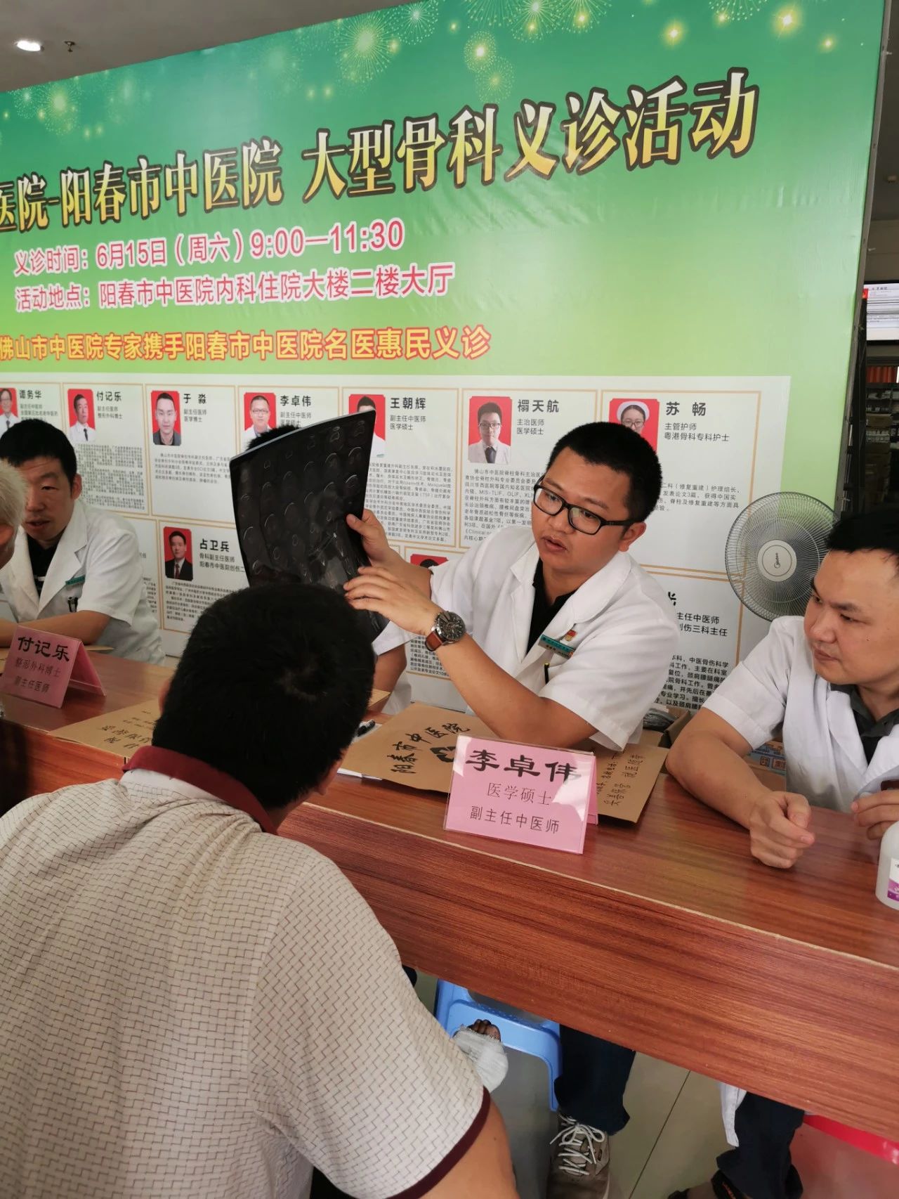 为加强医疗学术和技术交流,解决阳春地区广大人民群众"看病难、看病贵"的问题,6月15日,佛山市中医院骨科第一党支部的专家来到我院举行义诊活动,使广大人民群众足不出户就能享受到上级专家的诊疗服务。
