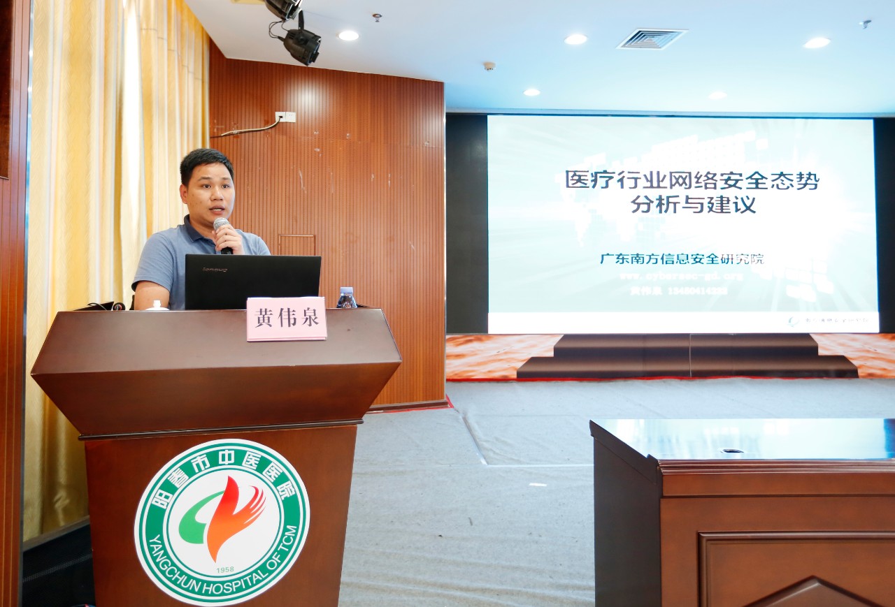 ▲广东南方信息安全研究院黄伟泉专家强调了“网络安全”的重要性,所有信息化建设安全都要考虑业务服务和医疗数据的安全,安全贯穿于整个信息化建设的过程中,要时刻关注。