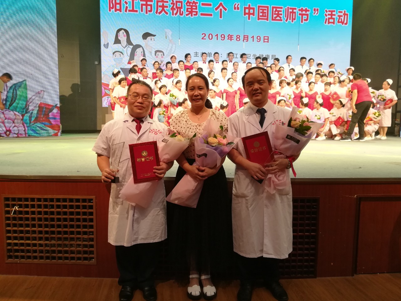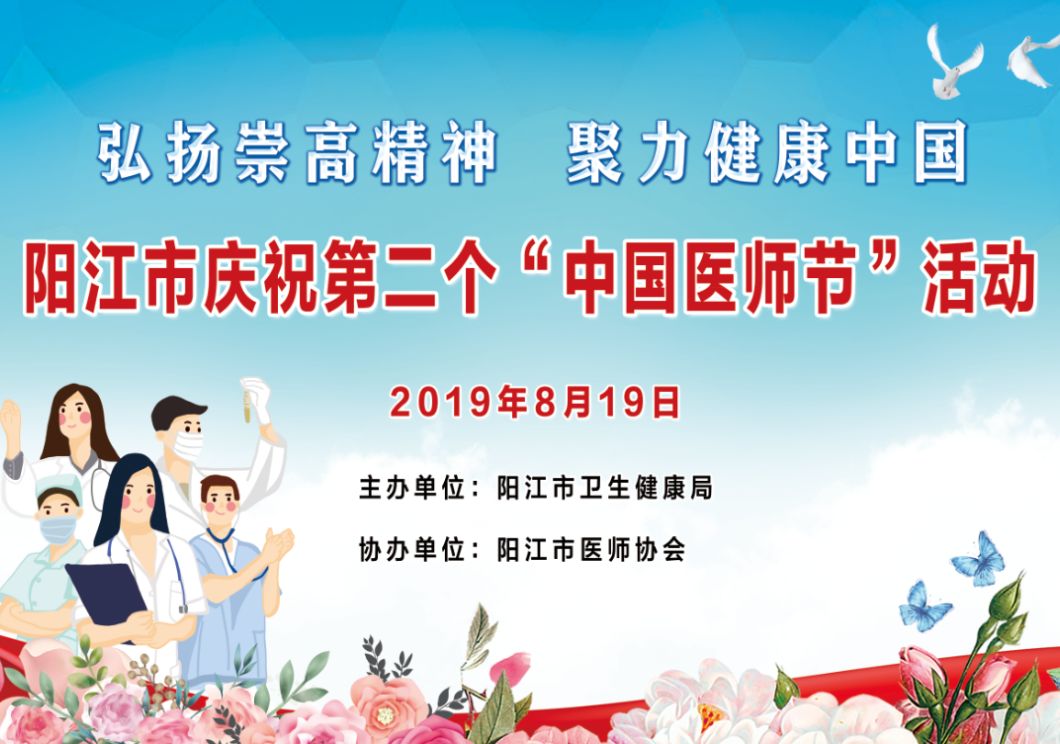 8月19日,迎来了第二个中国医师节。由阳江市卫生健康局主办,阳江市医师协会承办,以“弘扬崇高精神,聚力健康中国”为主题的2019年“中国医师节”暨表扬优秀医师、30年护龄护士大会在阳江市百乐演艺中心举行。载歌载舞,向全市医师致以节日问候。