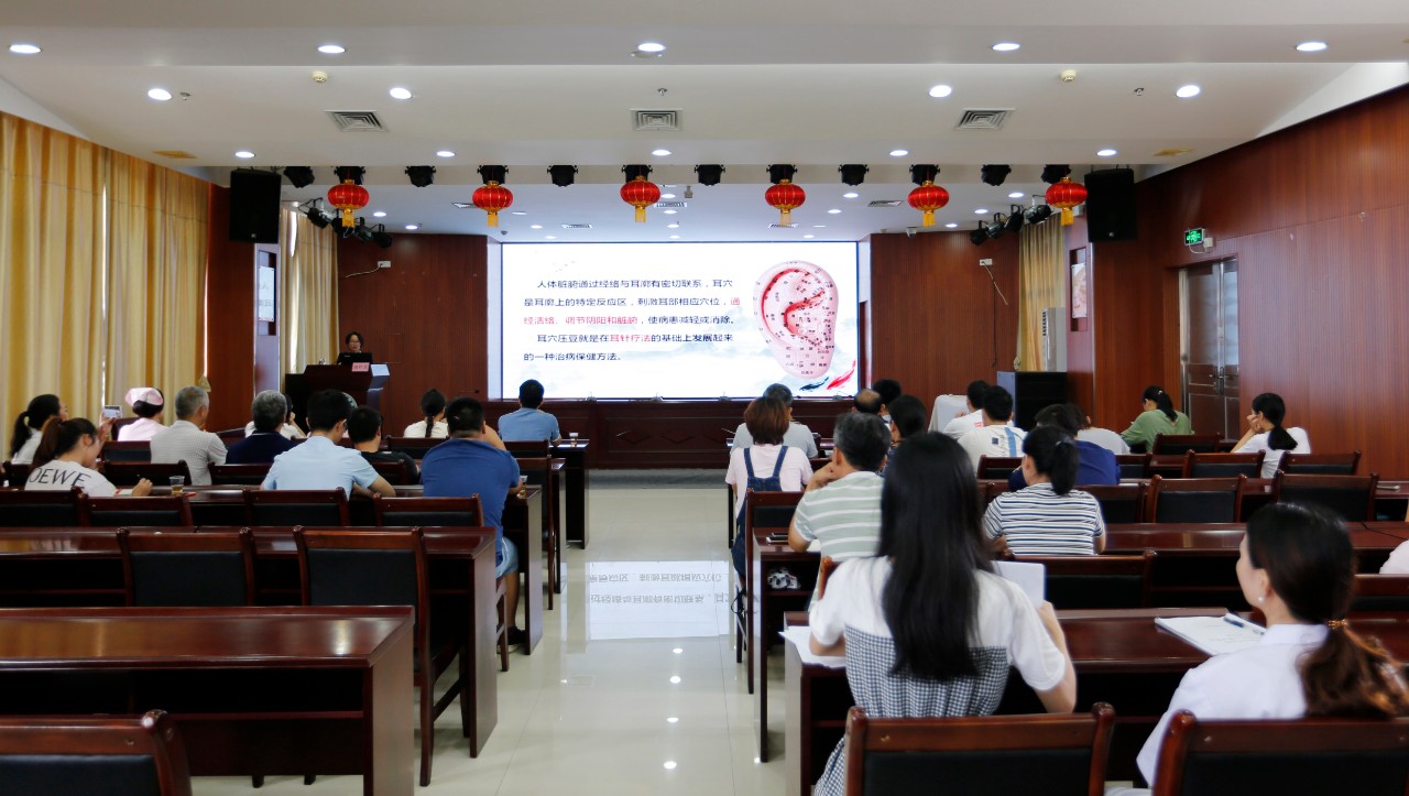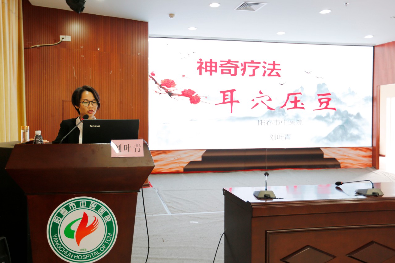▲刘叶青讲师进行耳穴压豆理论授课及实操