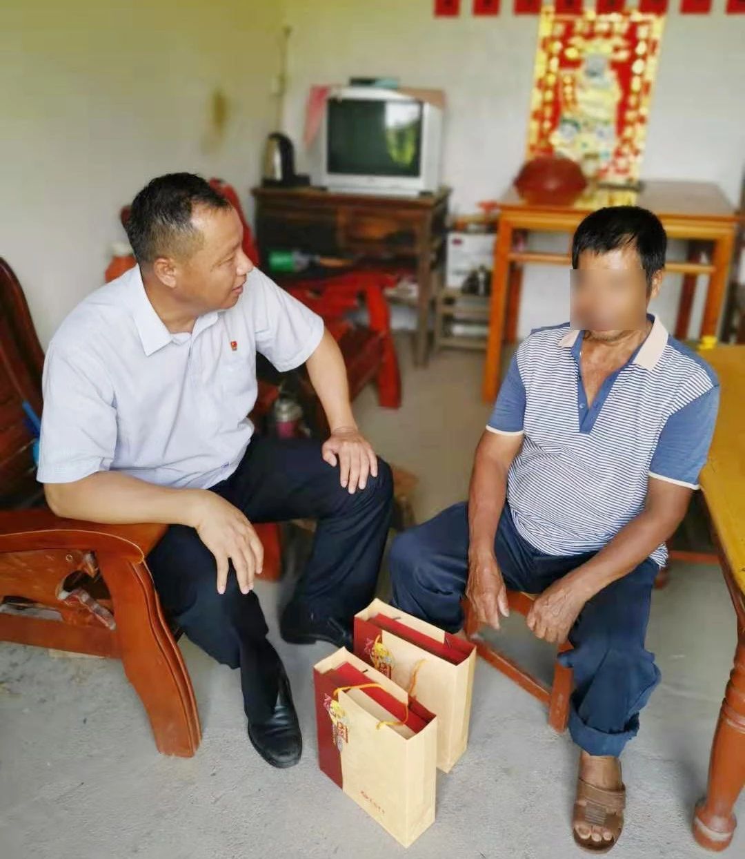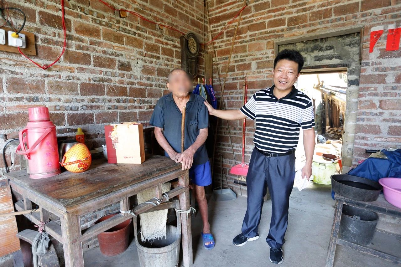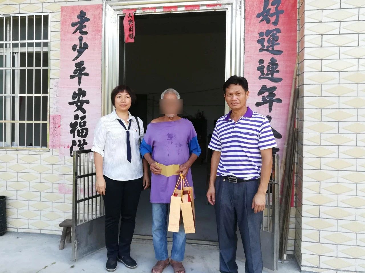 ▲扶贫工作组成员、宣传科主任林茂儒为贫困户送来月饼与慰问金