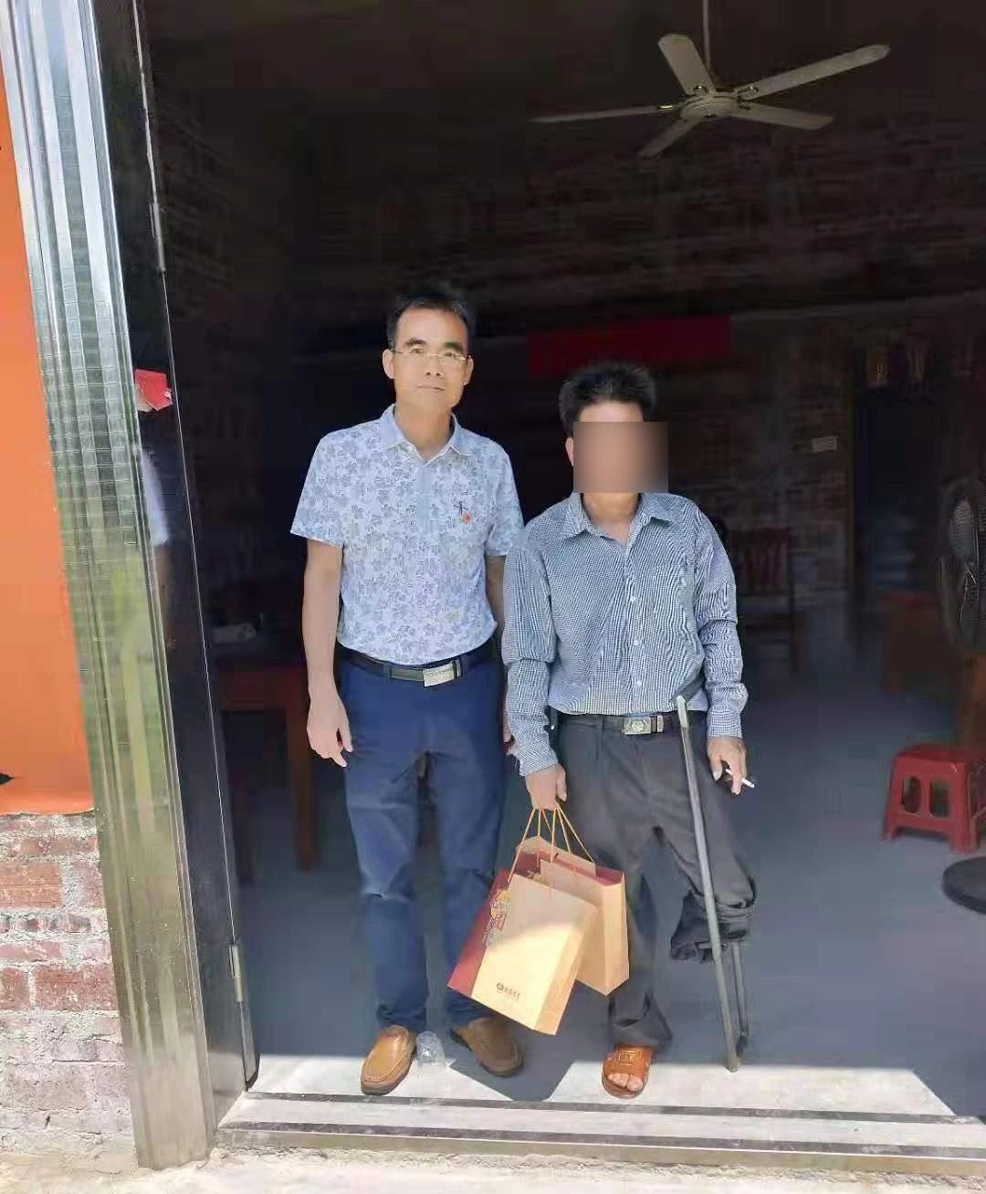 ▲扶贫工作组成员、副院长黄志强为贫困户送来月饼与慰问金