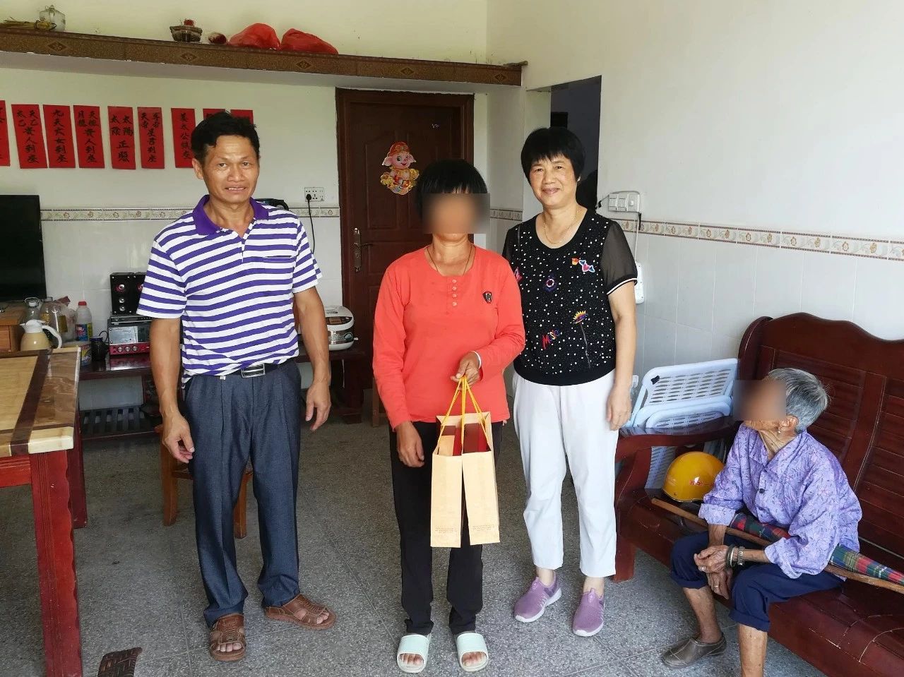▲扶贫工作组成员、工会主席杜洁挺为贫困户送来月饼与慰问金