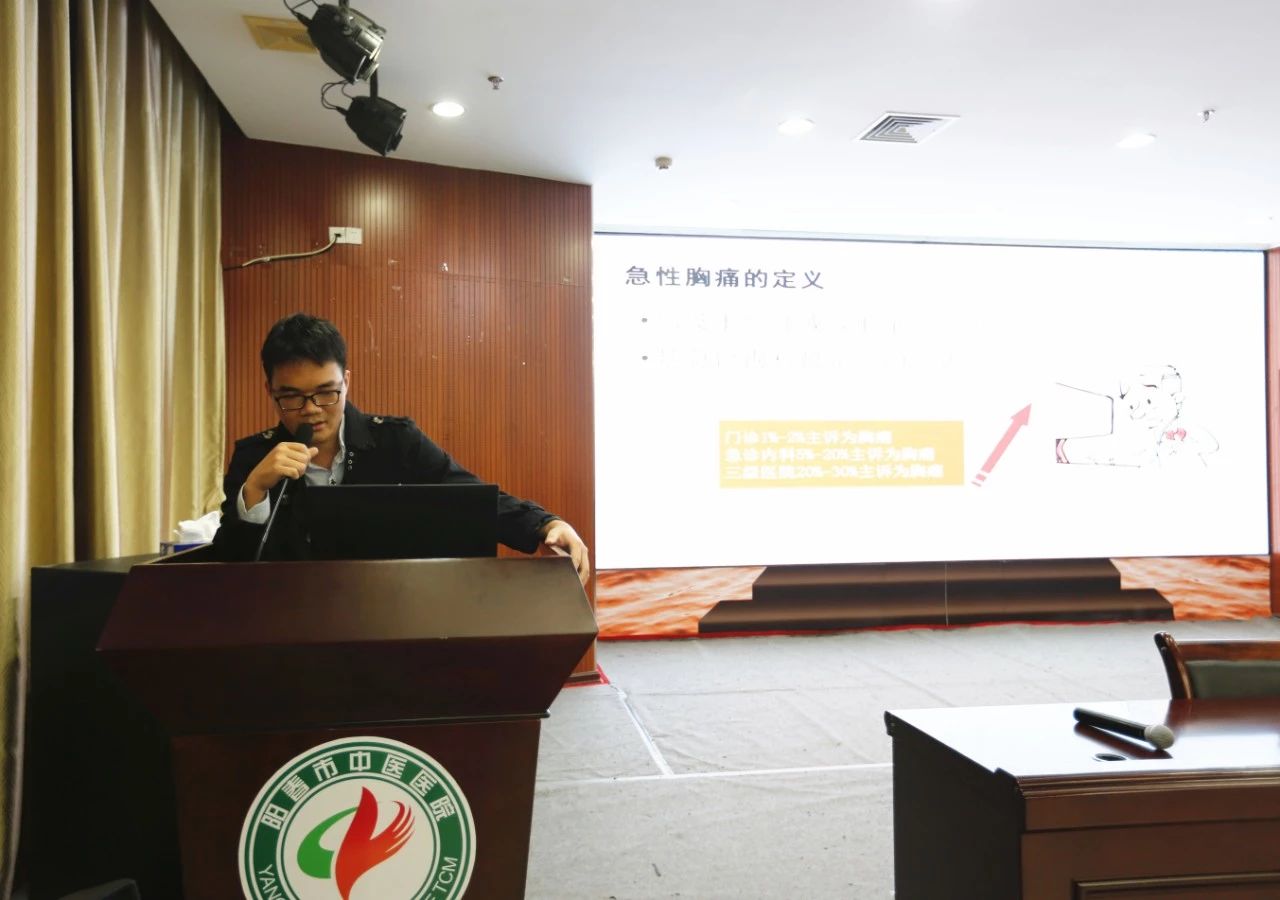 11月25日,我院在十一楼会议室举办胸痛中心规范化建设培训班,特别邀请了阳江市人民医院心血管内科主任、胸痛中心总监叶广宁,为我院全体员工进行了胸痛中心建设理论及实践指导。