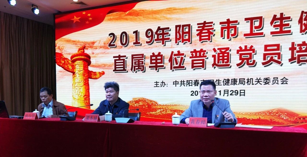 市卫健局党委书记、副局长梁本诚在培训班上作了讲话。本次培训班邀请了阳江、阳春市委党校讲师为党员们讲授了《学习习近平新时代中国特色社会主义思想 争做新时代合格党员》、《不忘初心 牢记使命》等主题内容。旨在通过培训,使医疗单位党员们的思想认识统一到党的十九大精神和习近平总书记对广东重要讲话和重要指示精神上来。
