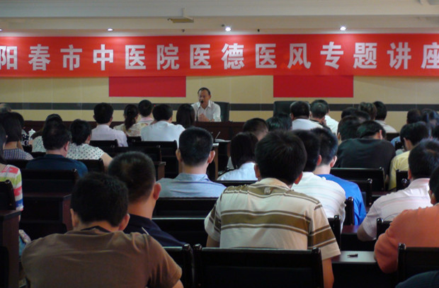 课上,陈建华副书记围绕新时期医务人员应具备的道德操守,就医务人员如何加强职业道德建设,深入浅出地利用论点、论据、案例进行了生动而具体的分析,引起了广大医务人员的共鸣,使在场的医务人员受益匪浅,真真正正接受了一次良好的职业道德教育。课后,李学应院长要求各医务人员要自觉遵守职业道德规范,使医德医风建设工作常抓不懈,取得实效,真正实现“服务好、质量好、医德好,让群众满意”。
