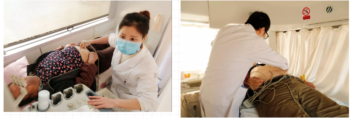 ▲医务人员为群众进行B超和心电图检查
