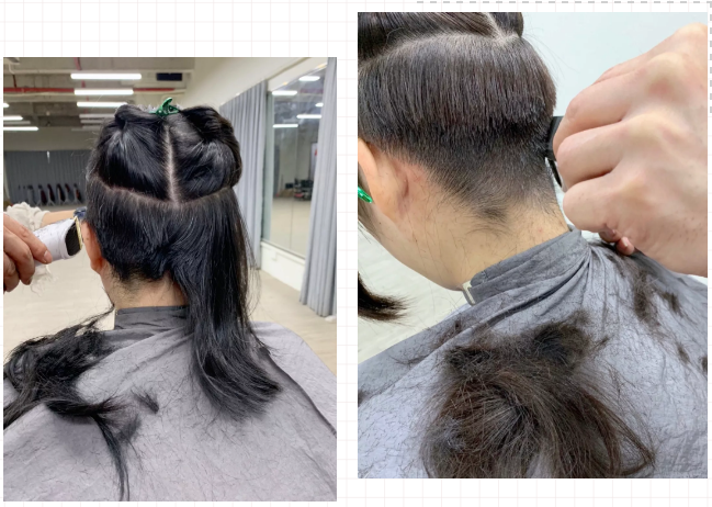 ▲“女战士”们在剪短发