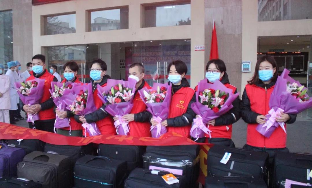 早上市委市政府在我们医院举行了出征仪式,天还没完全亮,很多出征队员的亲人、好友、同事已经在医院二楼大厅前等我们了。出征仪式简约而温馨,何梅副市长还给我们出征的队员每人都送上了爱心巧克力,让我们深受感动。亲戚朋友、同学、同事、兄弟姐妹,不知名的同行还有患者得知我出征湖北,都不约而同地通过电话、信息、微信发来关心和祝福,让我的眼睛一次又一次湿润。