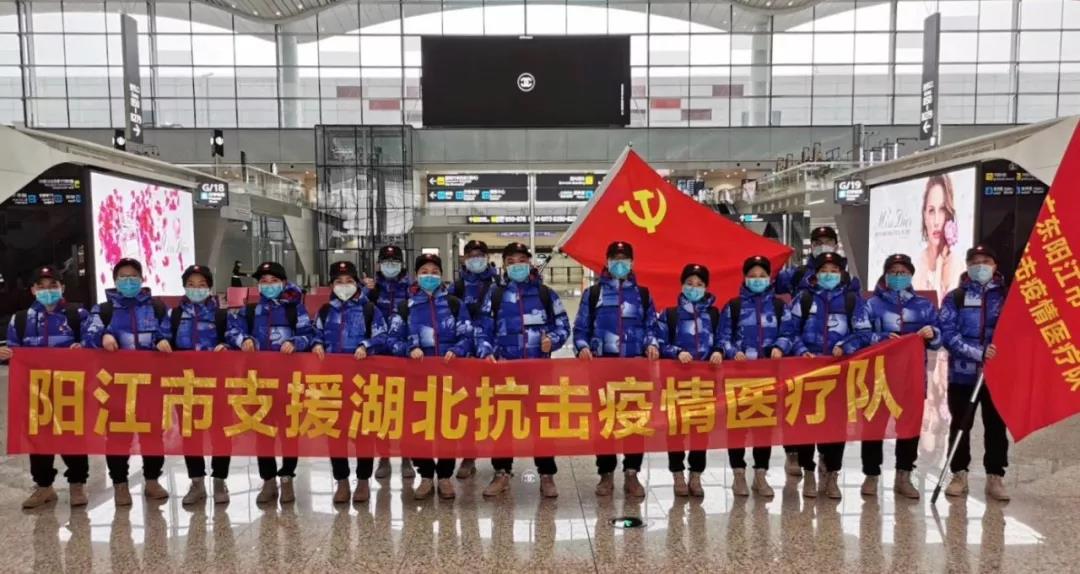 今天是阳江第二批驰援湖北抗疫医疗队出征的日子。一大早便下起了毛毛细雨,微信朋友圈都给医疗队出征刷屏了。可能是上天看到了我们举国上下万众一心抗击疫情的场面,雨后不久,太阳也出来露脸了,这预示着这场抗疫阻击战不久将获得胜利。