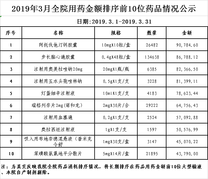 阳春市中医院阳光用药监控数据(2019年3月)