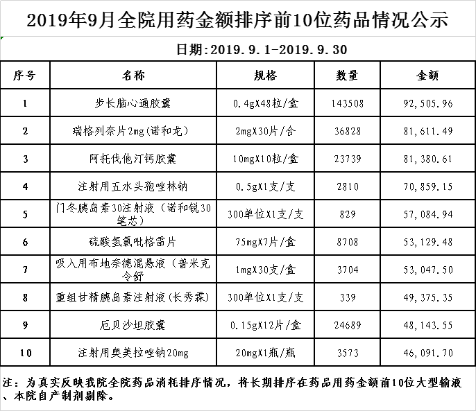 阳春市中医院阳光用药监控数据(2019年9月)