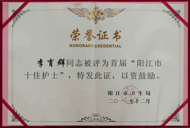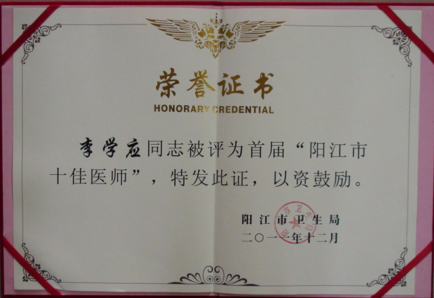 由阳江市卫生局主办的阳江市第一届“十佳医师”、“十佳护士”评选活动经层层选拔、严格审核、公众评选等环节,评选结果日前揭晓,我院李学应院长、护理部李育群主任凭着精湛的技术、良好的医德、优质的服务以较高的人气脱颖而出,分别荣获“十佳医师”和“十佳护士”称号,赢得了广大群众的普遍赞誉。