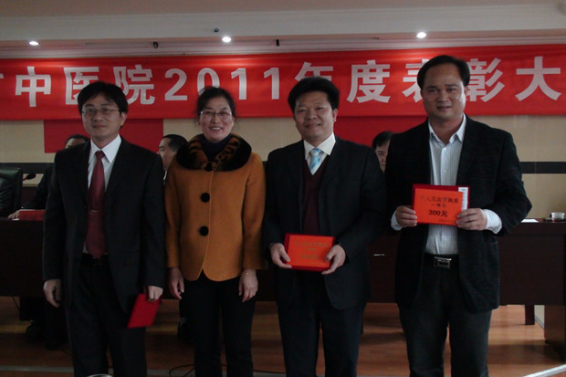1月13日下午,我院在大会议室隆重召开2011年度医院总结表彰大会,表彰奖励2011年度为医院发展作出突出贡献的先进集体和个人,以及在创建优质护理服务示范工程活动中获奖的集体和个人。医院中层以上领导干部及获奖代表等出席了表彰大会,李学应院长等院领导对受表彰的代表进行了颁奖。