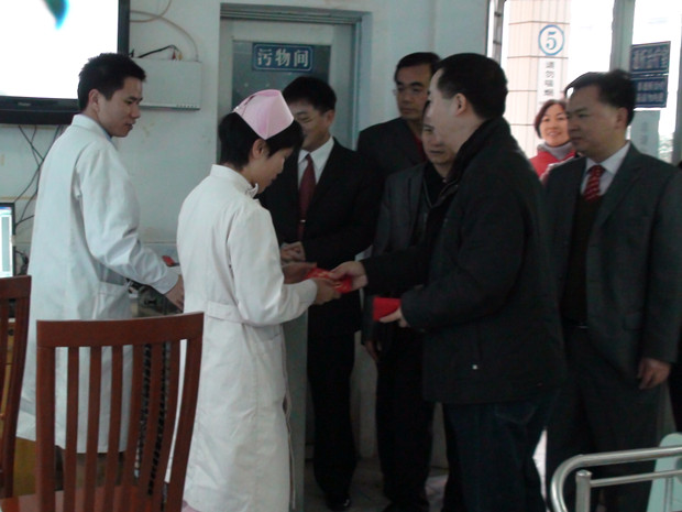 1月23日上午,院长李学应带领医院领导班子及部分职能部门负责人到医院各科室,看望慰问了节日期间仍坚守在工作一线的职工。慰问期间,院领导向坚守工作岗位的职工送上真切的新春祝福和美好祝愿,感谢他们节假日辛劳工作、服务群众,对他们一直以来对医院工作的支持表示衷心地感谢,并送上节日礼物和大红利是,同时还详细了解了各科室病人的就诊状况和节日期间医护人员的值班情况,嘱咐广大医务工作者要注意医疗安全,保证医疗质量。慰问期间,院领导还专门到妇产科看望了刚出生的“龙宝宝”,并送上新年利是和节日祝福。