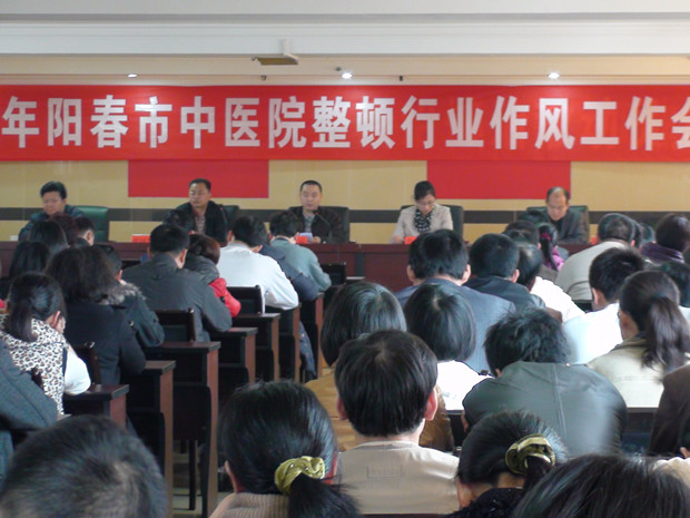 2月21日下午,我院召开整顿行业作风工作会议,传达阳江市委市政府、市卫生局有关整顿作风工作会议精神,安排部署我院整顿行业作风工作。医院领导班子及全院员工参加了会议。