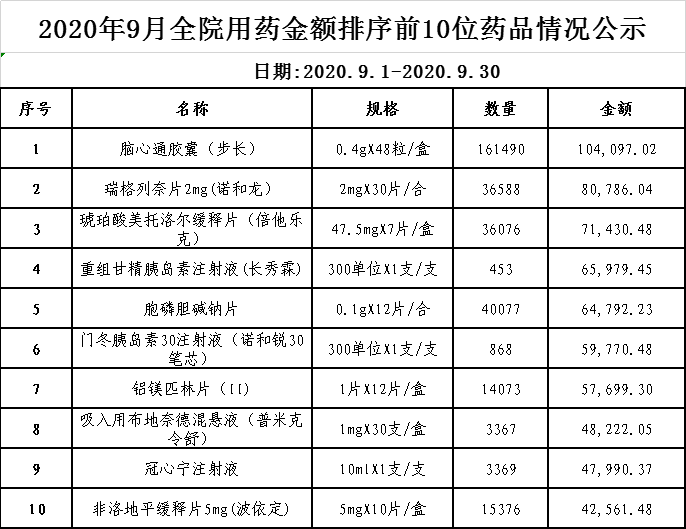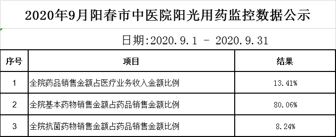 阳春市中医院阳光用药监控数据(2020年9月)