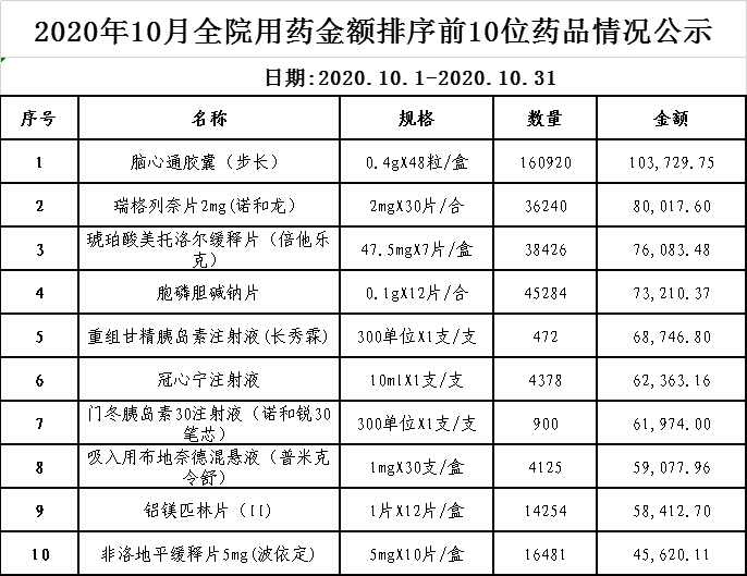 阳春市中医院阳光用药监控数据(2020年10月)