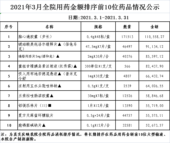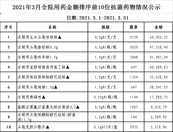 阳春市中医院阳光用药监控数据(2021年3月)