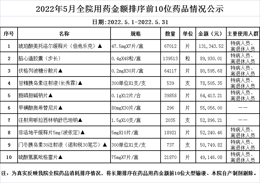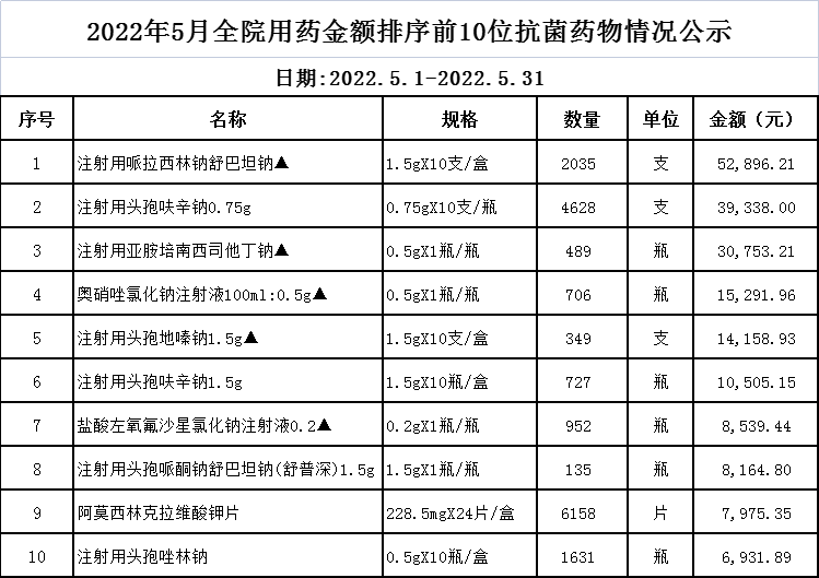 阳春市中医院阳光用药监控数据(2022年5月)