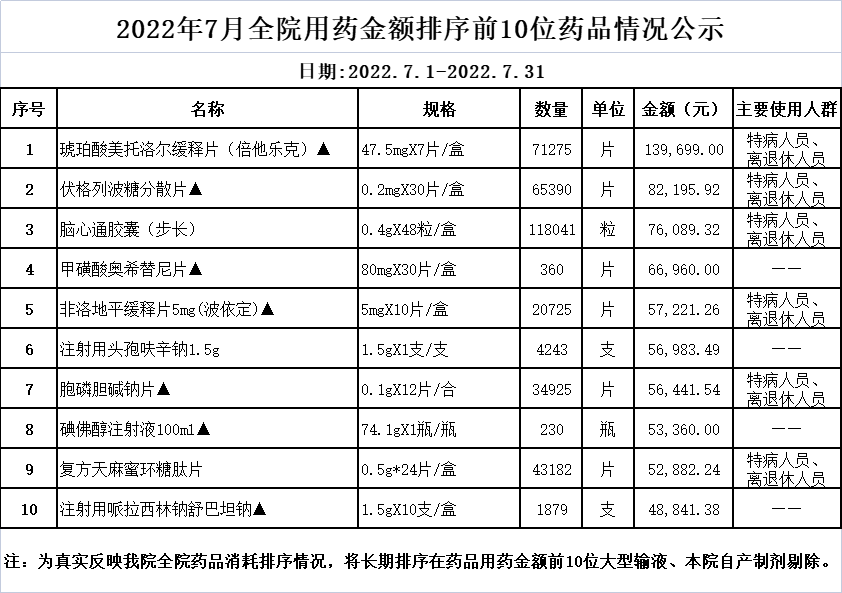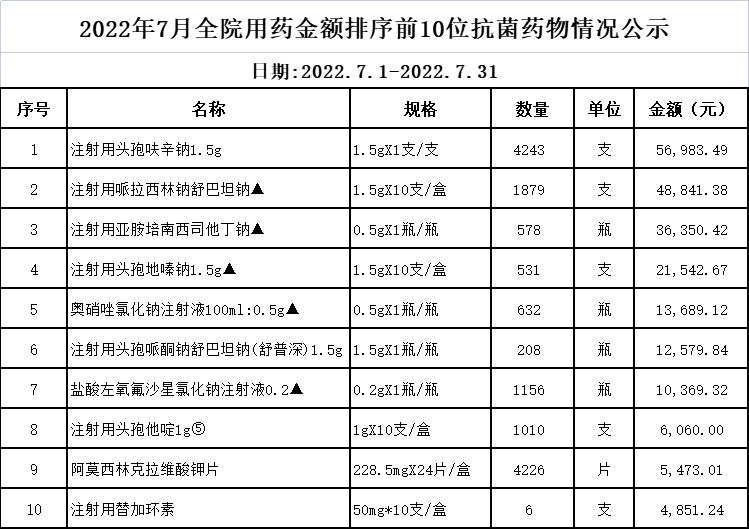 阳春市中医院阳光用药监控数据 (2022年7月)