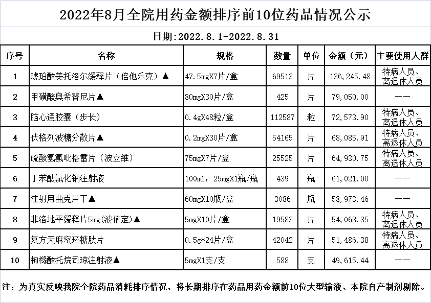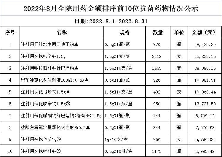 阳春市中医院阳光用药监控数据 (2022年8月)