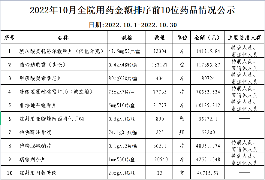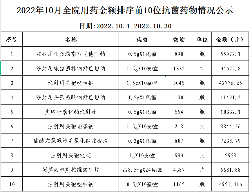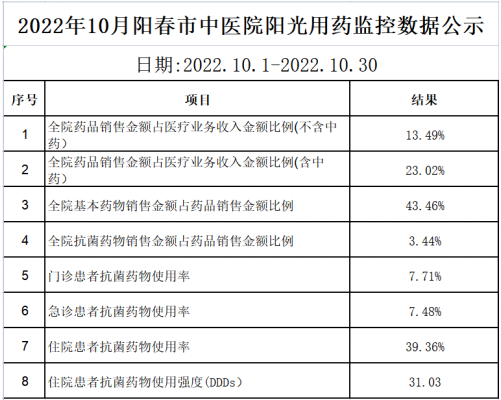 阳春市中医院阳光用药监控数据 (2022年10月)