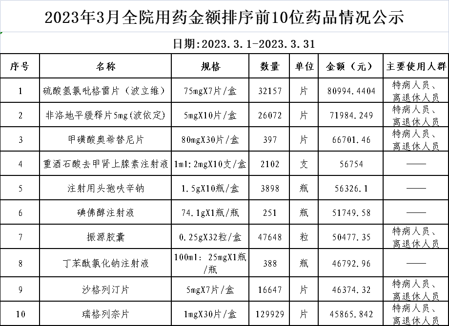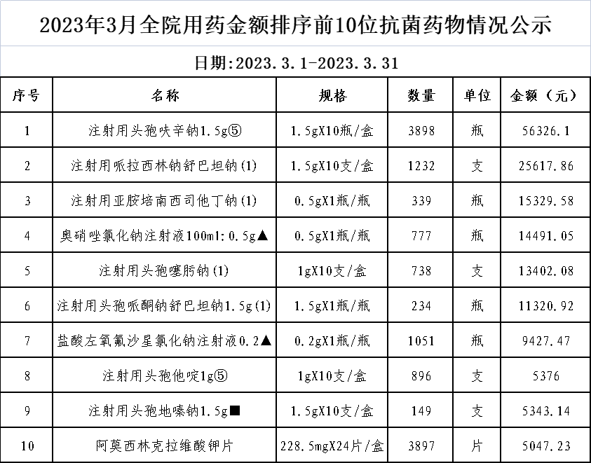 阳春市中医院阳光用药监控数据 (2023年3月)
