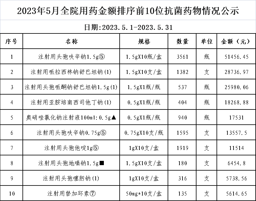 阳春市中医院阳光用药监控数据 (2023年5月)