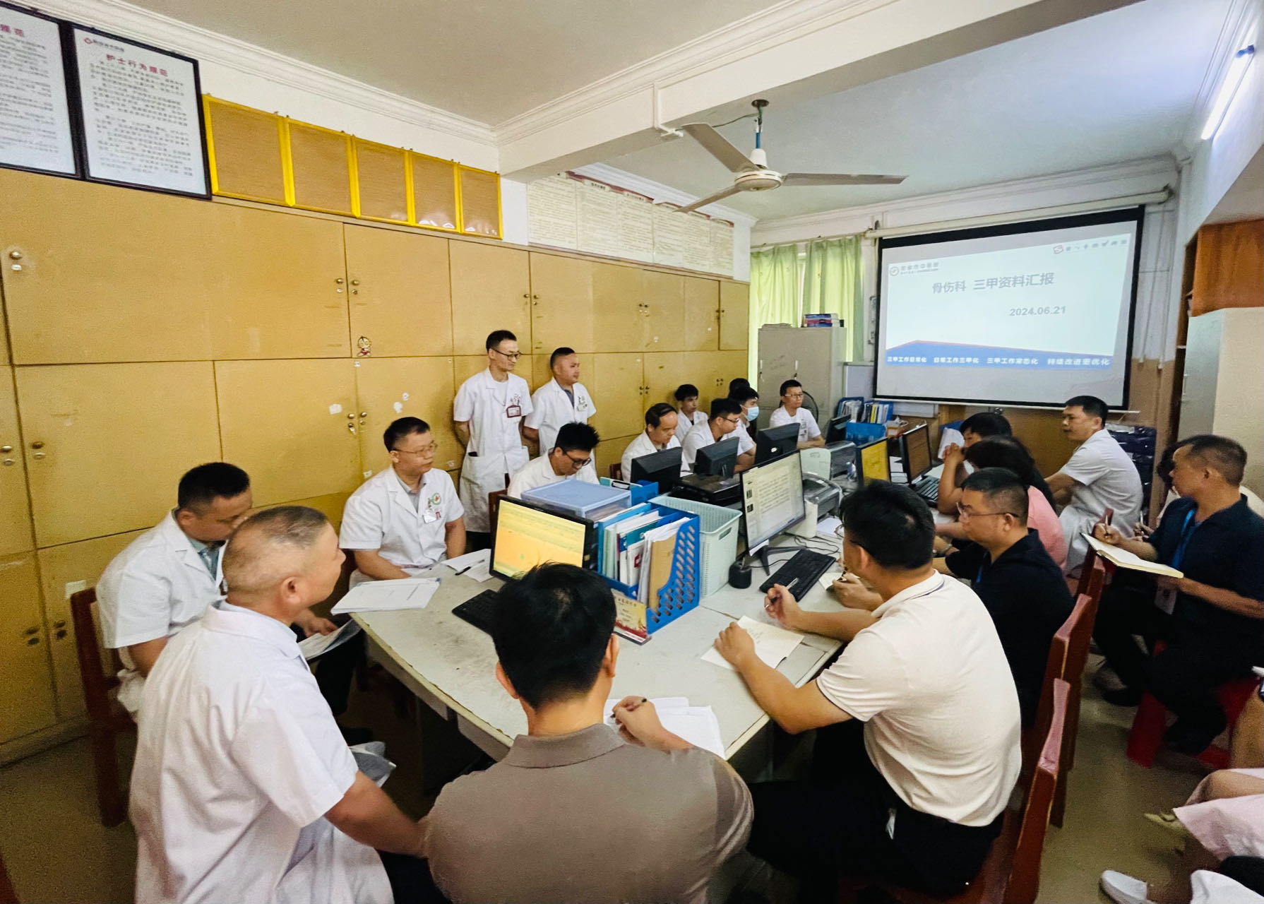 在此次行政查房中,行政查房组一行认真听取了骨科、康复科主任汇报科室的基本情况、科室“创三甲”工作进度、目前存在的问题及遇到的困难。各科护士长和其他人员也相继汇报了工作情况,提出了工作上的疑问。本着认真负责的态度,各部门负责人对科室提出的问题进行一一解答,并提出了中肯的建议,希望科室认真解决好目前存在的问题,加快发展脚步。