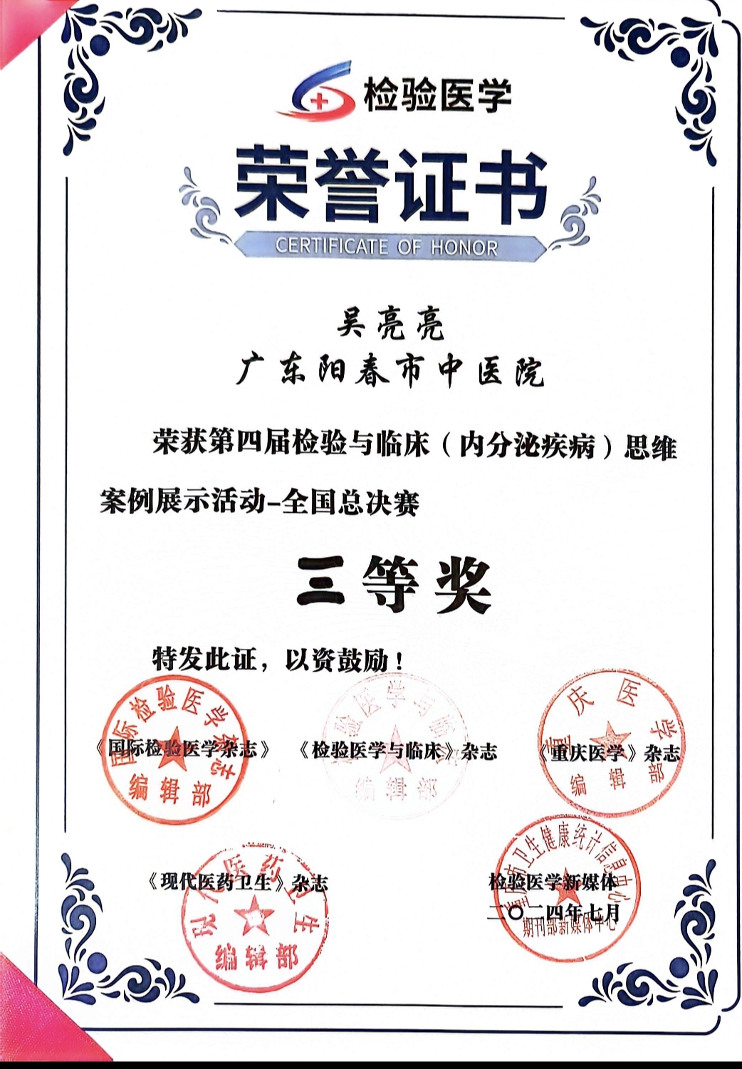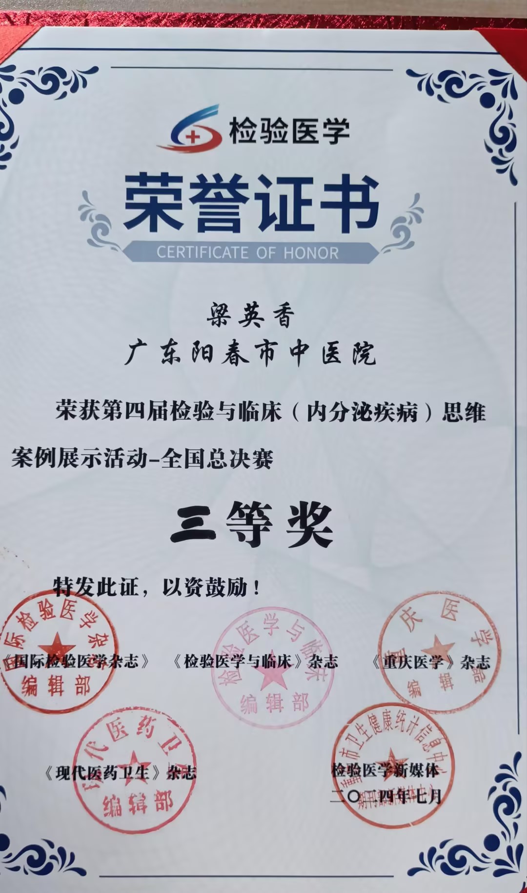 【喜讯】我院吴亮亮、梁英香荣获第四届检验与临床(内分泌疾病)思维案例展示活动全国总决赛三等奖、稿件质量排名全国第3