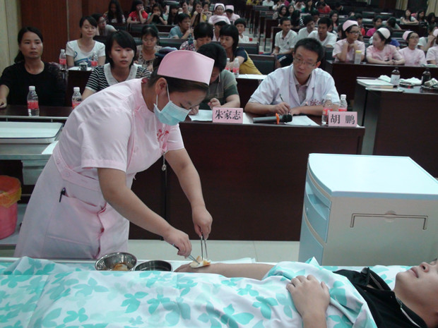 为了搞好本次中医护理技能竞赛活动,科教科、护理部对活动进行了精心策划,选出“拔火罐”、“开天门”、“湿敷法”三个具有中医特色的护理操作作为比赛项目。赛前由护理部多次组织中医专家对参赛护士进行标准培训,确保每个动作务必规范,达到治疗效果,操作规程达到标准化水平。