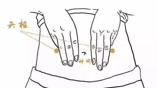 肚脐两侧旁开2寸为天枢穴,这个方法能刺激此穴,治疗急慢性胃肠炎及消化功能紊乱引起的积食、呕吐、腹泻、便秘等。